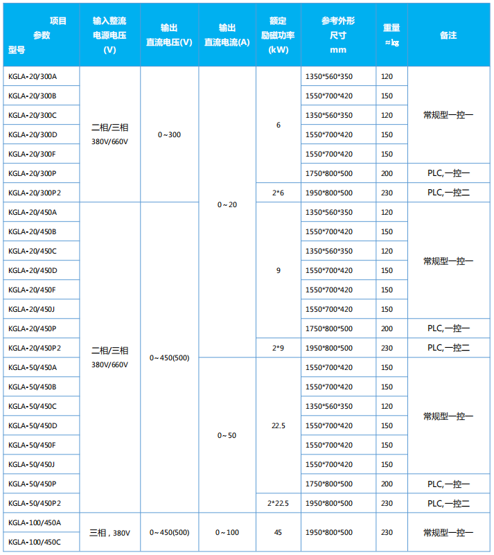 三、KGLA系列電磁除鐵器可控硅整流柜主要技術參數、外形尺寸